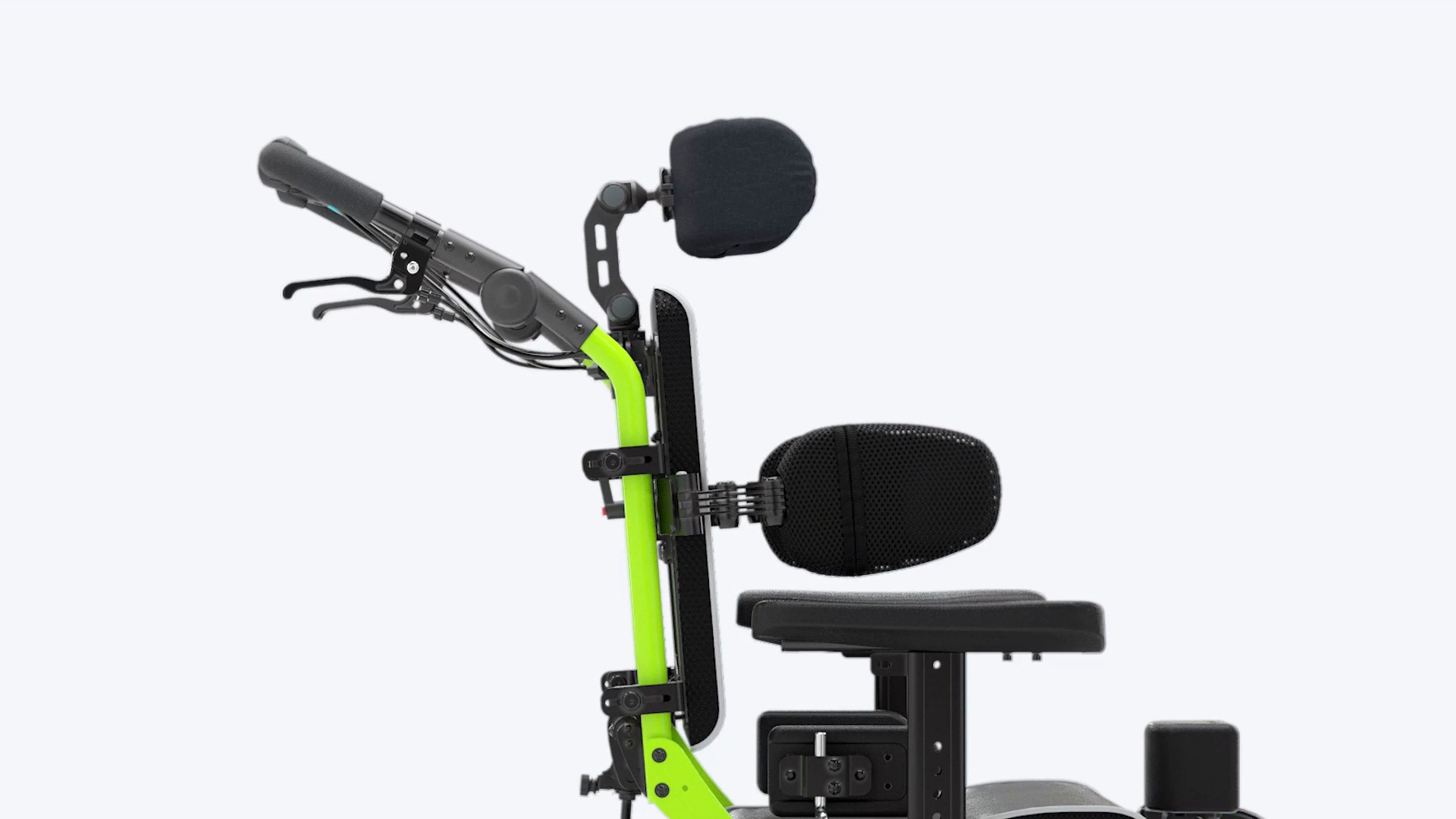 背板滑槽設計與側車身的滑軌技術,便利加裝不同的頭靠、扶手、軀幹/臀側支撐、膝外支撐與骨盆帶,配件選擇更多元。